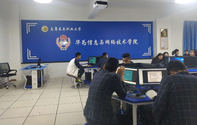 乌鲁木齐职业大学创建于1985年,是乌鲁木齐市属唯一一所综合性全日制普通高等职业院校,是新疆改革开放后创建的第一所高等职业院校。2018年讯方公司与乌职大信息工程学院系召开合作,建设了集通信、计算机网络、网络安全全方位的现代化实训室,成功申请了华为ICT学院。2019年5月讯方再次与乌职大展开合作,为方便学生在校参加华为培训,我司派遣资深讲师进驻学校,进行为期1个月的华为HCIP-R&S的培训,培训之后全部学员顺利获得华为认证。截至2019年7月,乌职大已有近百名学子以认证优惠价格考取了华为认证,提升了学生实习就业率及薪资待遇。